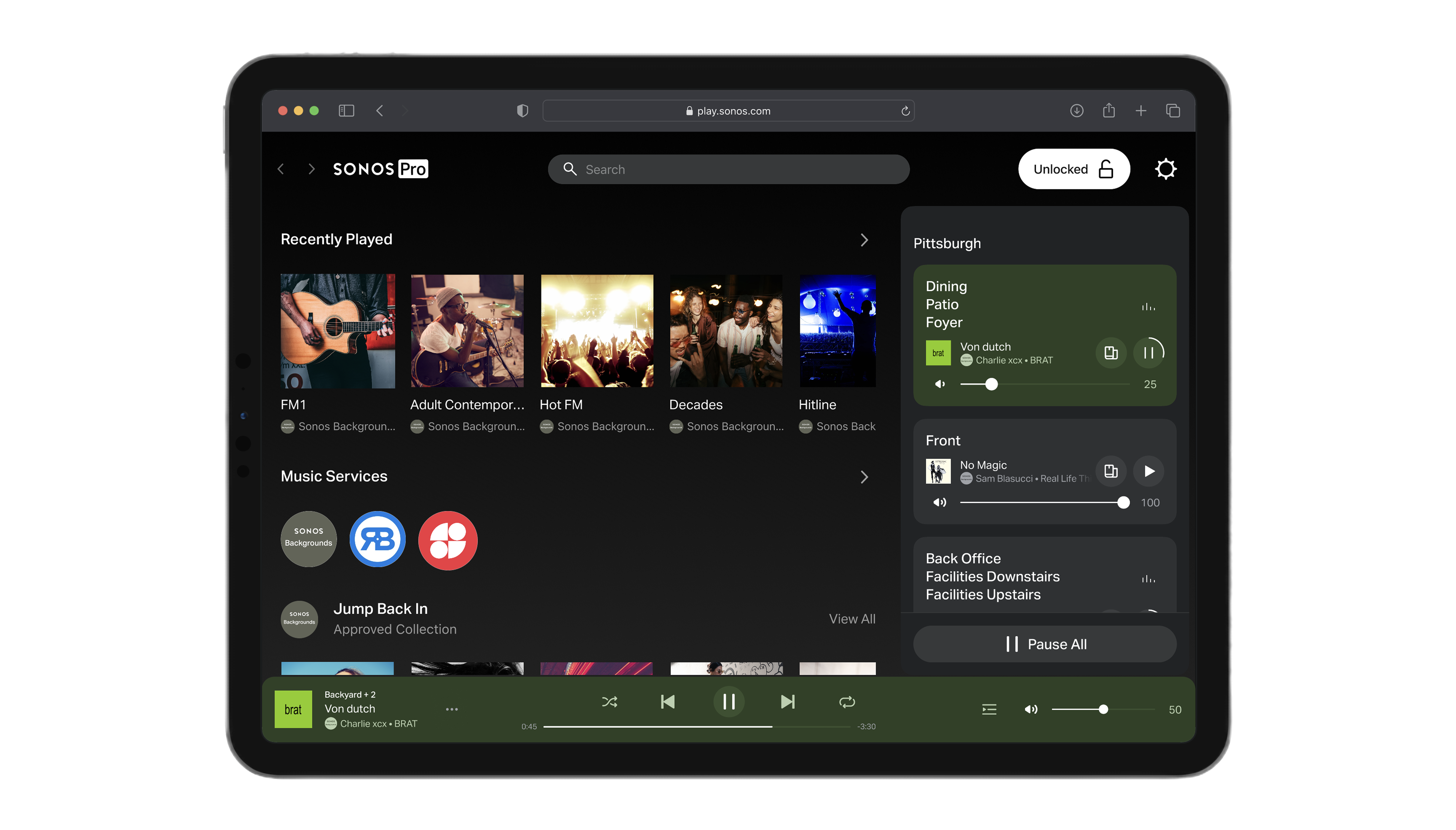 As a Sonos Pro subscriber, you can decide how much control employees have over music. Set up Locked Mode in the Sonos web app to selectively restrict access to certain features and settings. You or an admin can set this up on the device your employees use in your business location.