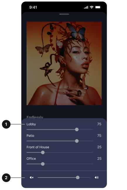 1 | Content information | Displays information about your current listening session and the where content is playing from (a service, AirPlay, etc.) Information can include: